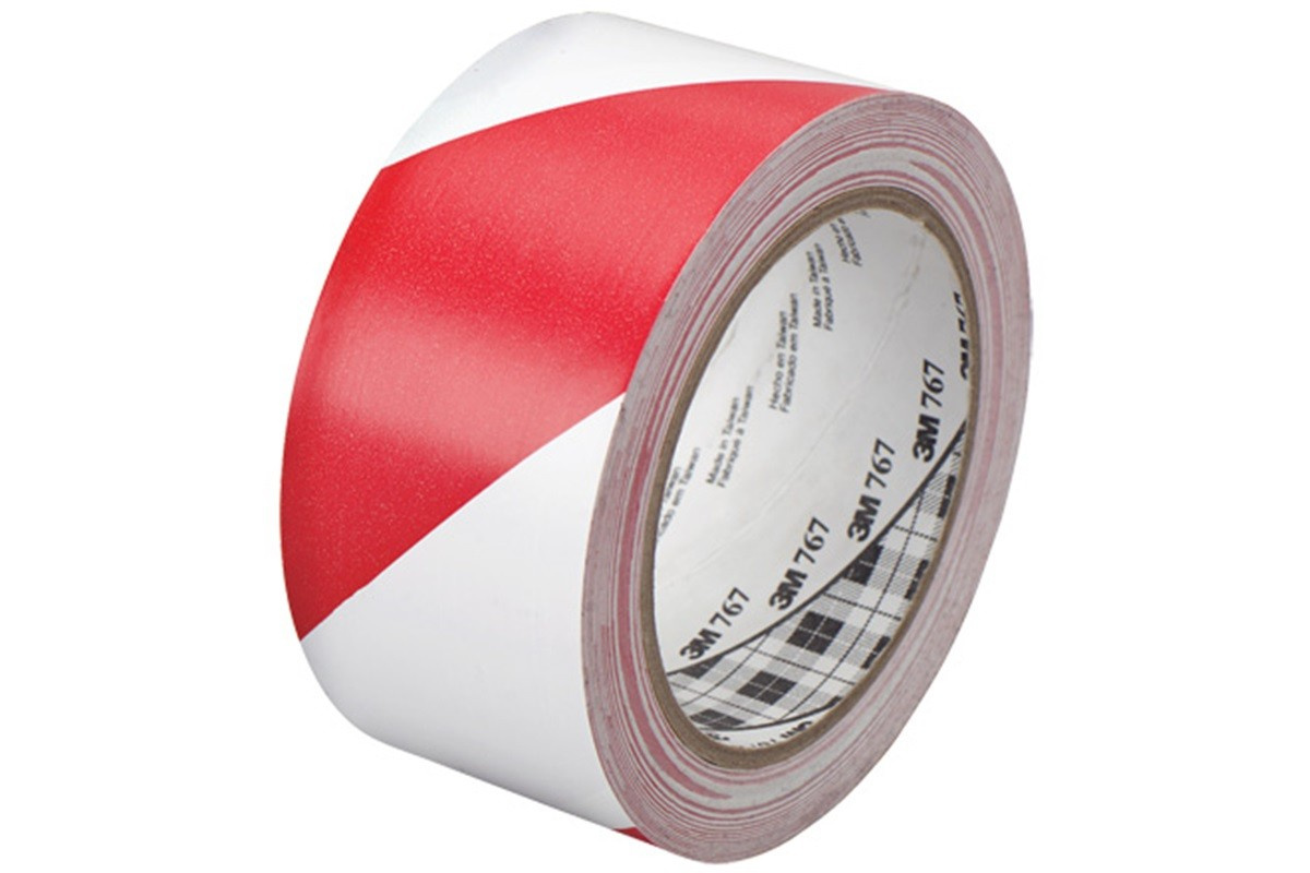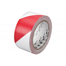 Winylowa biało-czerwona taśma 3M 767 z szrafowaniem pod kątem 45° jest przeznaczona do pionowego oznakowania bezpieczeństwa np.