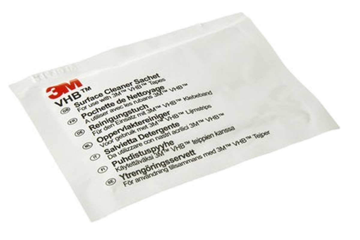 Chusteczka czyszcząca 3M VHB 1753 (3M VHB Surface Cleaner Sachet) o wymiarach 145 x 145 mm jest nasączona izopropanolem i wodą demineralizowaną w proporcji 90 : 10. Jest idealny do czyszczenia i odtłuszczania powierzchni przed klejeniem taśmą lub klejem. Można nim czyścić różne powierzchnie, np. metale, tworzywa sztuczne lub lakierowane powierzchnie, jednak zawsze należy wcześniej przetestować środek czyszczący na powierzchni.