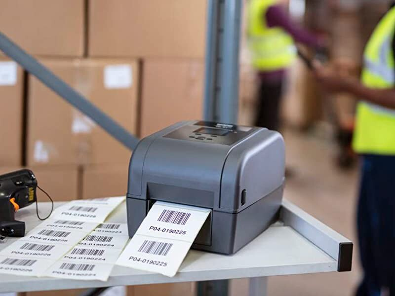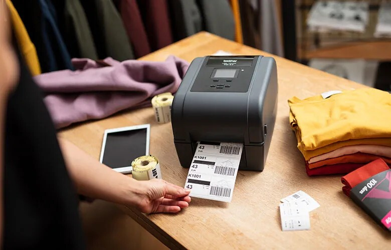 Uniwersalna drukarka etykiet Brother TD-4750TNWBR drukuje za pomocą technologii termotransferowej.