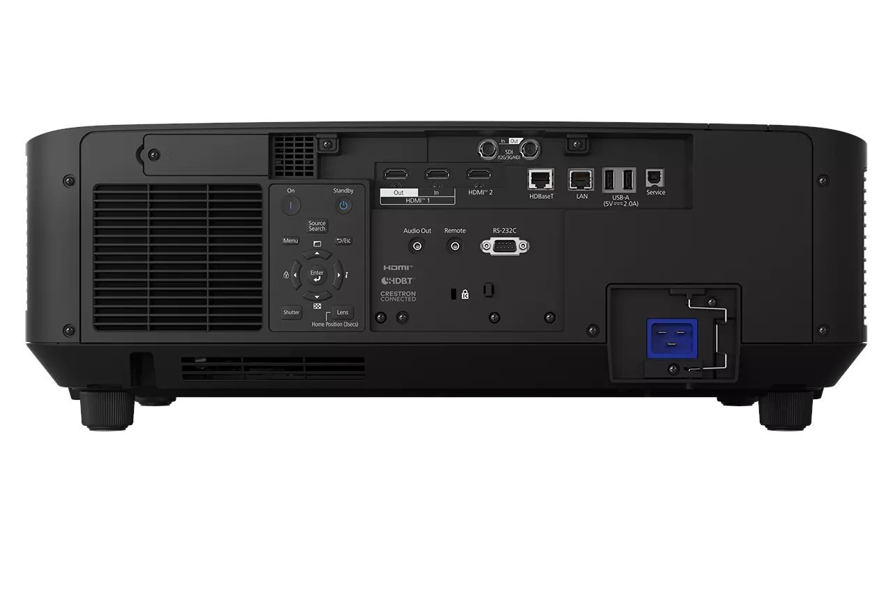 Interfejs: USB 2.0-A (2x), USB 2.0 typ B (tylko serwis), RS-232C, interfejs Ethernet (100 Base-TX / 10 Base-T), bezprzewodowa sieć LAN IEEE 802.11a/b/g/n (opcjonalnie), wejście HDMI (2x), wyjście HDMI, HDBaseT, wyjście audio, stereofoniczne gniazdo mini-jack, Technologia komunikacji bliskiego zasięgu (NFC), odtwarzanie treści USB, pilot, Wejście 12G SDI, Wyjście 12G SDI