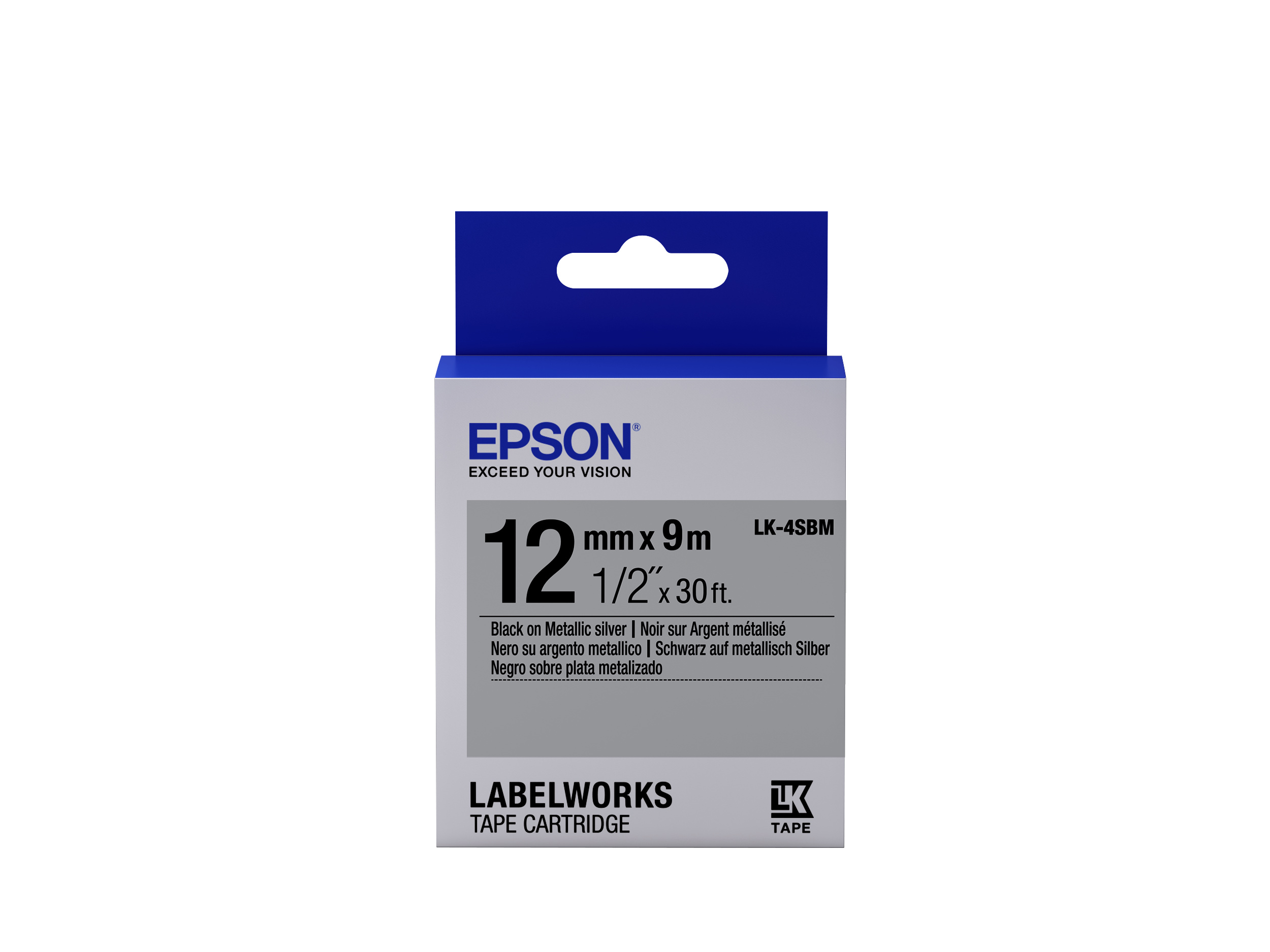 Epson LabelWorks LK-4SBM C53S654019 12mm x 9m, czarny druk / srebrny podkład, fluorescencyjny, taśma oryginalna