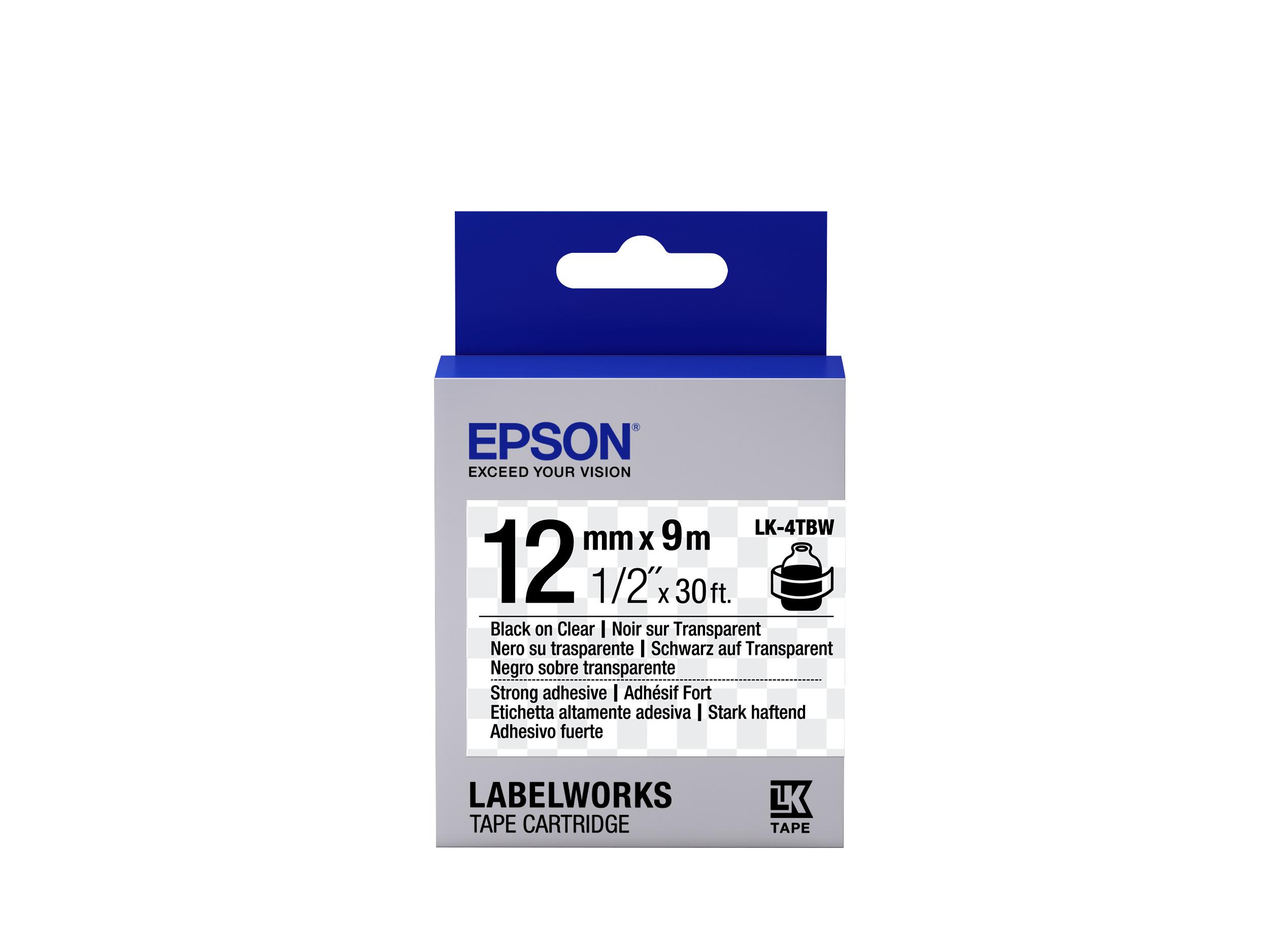 Epson LabelWorks LK-4TBW C53S654015 12mm x 9m, czarny druk / przezroczysty podkład, silna przyczepność, taśma oryginalna