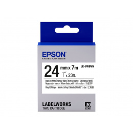 Epson LabelWorks LK-6WBVN C53S656020 24mm x 7m, czarny druk / biały podkład, winyl, taśma oryginalna może być stosowany w tych drukarkach