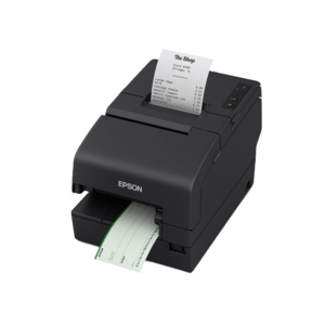 Drukarka wielostanowiskowa, termiczna bezpośrednia, druk matrycowy, 7 punktów/mm (180 dpi), maksymalna szerokość nośnika.): 80 mm, średnica rolki (maks.): 83 mm, prędkość (maks.): 500 mm/s, cutter, MICR, USB (typ A, typ B), RS232, Ethernet, wysuw szuflady, emulacja: OPOS, JavaPOS, ePOS, w tym.: rolka paragonowa, QSG, zamów osobno: kabel interfejsu, zasilacz, kabel zasilający, kolor: czarny