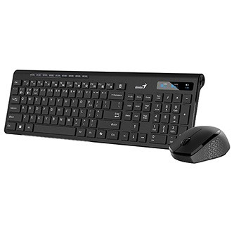 Bezdrátový set klávesnice a myši GENIUS Slimstar 8230 zvládne všechny každodenní úkoly ve firemní kanceláři nebo na home-office. Klávesnice podpoří rychlé a komfortní psaní i velmi náročných a dlouhých dokumentů. Za zmínku stojí také přítomnost multimediální kláves pro základní kontrolu hlasitosti zvuku nebo pozastavení přehrávání. Bezdrátová klávesnice Genius rovněž disponuje numerickým blokem pro zadávání číselných znaků. Bezdrátová myš Genius je vybavena optickým senzorem s rozlišením 1200 DPI, které umožňuje hladký a plynulý pohyb po pracovní ploše a tím přesné ovládání kurzoru. Bezdrátové připojení je realizováno skrze USB adaptér s 2,4GHz rozhraním a Bluetooth a umožní vám činnost až na třech zařízeních současně.