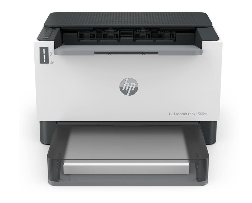 Odkryj funkcje i oszczędne rozwiązania klasy biznesowej z drukarką HP LaserJet Tank 1504w, która zawiera już oryginalny toner HP do wydrukowania do 5 000 stron
