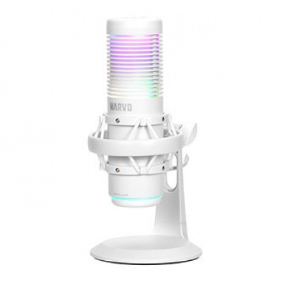 Opis produktu Marvo, herní/streamovací mikrofon, BLAST 60 White, bílý, RGB podsvícení, vstup pro sluchátka