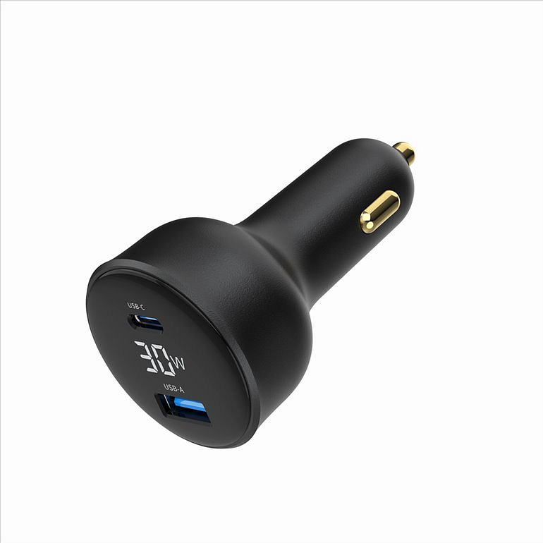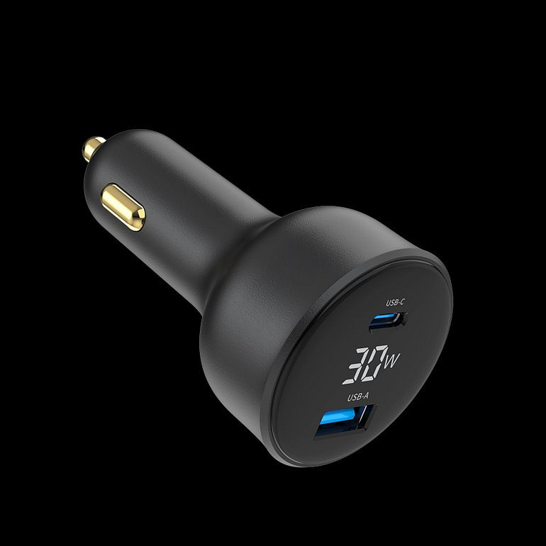 CZYSTA MOC 30 W mocy dla Twojego smartfona lub iPhone z złączem Type-C* Szybsze ładowanie: idealne na krótkie podróże i dojazdy Pomaga utrzymać naładowaną baterię telefonu podczas korzystania z aplikacji muzycznych lub nawigacyjnych o wysokim zużyciu energii Praktyczny wyświetlacz LCD z wskaźnikiem ładowania Cechy 2-portowa szybka ładowarka samochodowa PowerDelivery (PD) z USB Type-C i mocą 30 W Port Type-C obsługuje 30 W PD, port Type-A obsługuje 30 W QC 3.0 Praktyczny wyświetlacz LCD pokazuje stan ładowania Inteligentna ochrona przed nadmiernym prądem, przepięciem i zwarciem Specyfikacja Napięcie wejściowe: 12 - 24 V?, max. 3,0 A Wyjście USB-A: 5,0 V? 3,0 A, 9,0 V? 3,0 A, 12,0 V? 2,5 A (maks. 30 W) Wyjście USB-C: 5,0 V? 3,0 A, 9,0 V? 3,0 A, 12,0 V – 2,5 A (maks. 30 W) Wyjście USB-A+USB-C: 5,0 V – 3,6 A (maks.) 18 W)