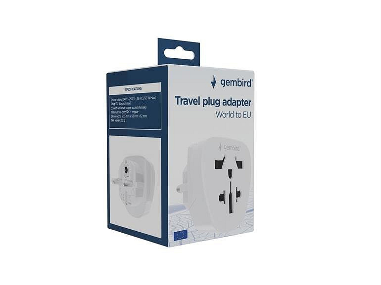 Ten adapter umożliwia podłączenie dowolnego urządzenia elektrycznego do standardowych gniazdek UE. Działa z wtyczkami z ponad 200 krajów. Właściwości Adapter podróżny Uziemiona wtyczka pasuje do każdego standardowego gniazdka w UE. Uniwersalne gniazdko akceptuje wtyczki z ponad 200 krajów. Specyfikacja Nominalna moc: 100–250 V AC, 15 A (maks.) 3750 W). Wtyczka: EU Schuko (męska). Gniazdko: Uniwersalne gniazdko (żeńskie). Materiał: Ognioodporny PC + miedź. Wymiary: 50 x 49,5 x 49,5 mm. Masa netto: 53 g.