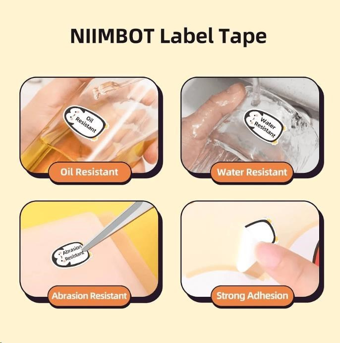 Odporność i trwałość - Powierzchnia kolorowych etykiet samoprzylepnych Niimbot jest odporna na wilgoć, promieniowanie UV i ścieranie, co gwarantuje długotrwałą czytelność.