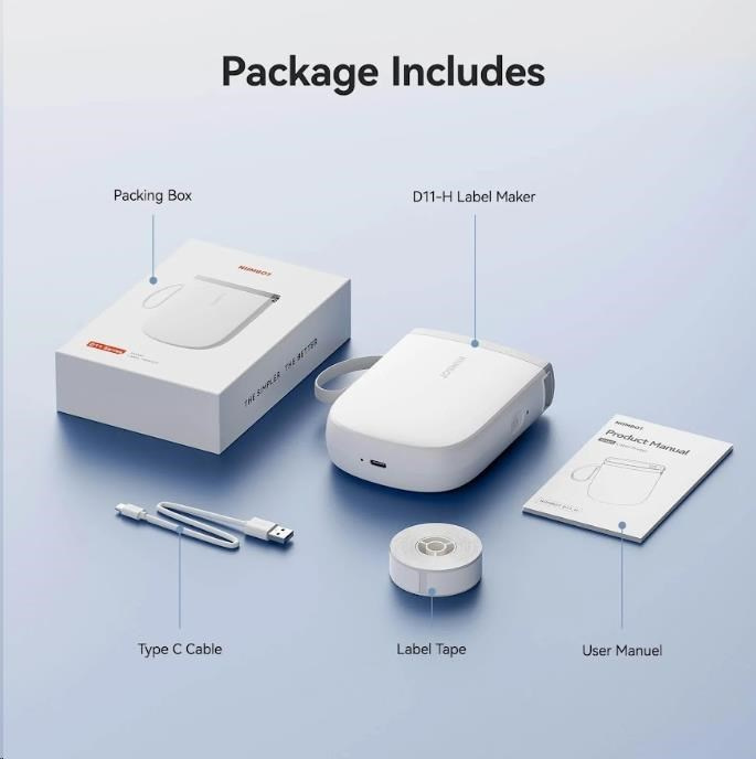 Etykieciarka Niimbot D11-H Smart 1AA57281601, pasek na nadgarstek, kabel ładujący USB-C, zestaw białych samoprzylepnych etykiet 12 x 40 mm (160 szt.)