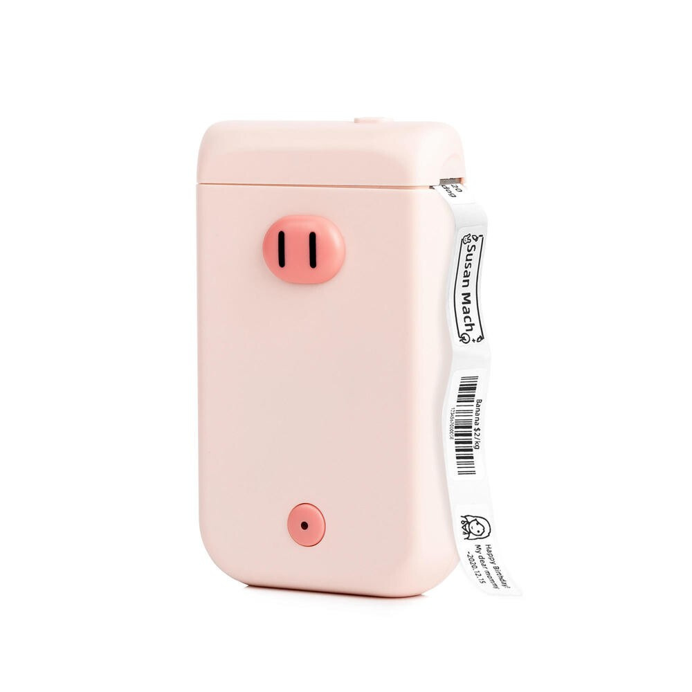 Etykietownik PONY D30S Mini Pink Pig to kieszonkowa drukarka termiczna. Drukuj łatwo i szybko ze swojego telefonu komórkowego lub tabletu za pomocą bezprzewodowego połączenia BlueTooth lub aplikacji Print Master na Androida lub iOS. Etykieciarka PONY D30S potrafi drukować na samoprzylepnych etykietach z ekologicznych materiałów kody kreskowe, tekst, obrazy i ikony. Z tym uroczym i kolorowym etykietownikiem z motywem świnki, który będzie przydatnym pomocnikiem w twoim domu, możesz oznaczać słoiczki z przyprawami w kuchni, organizery na kosmetyki czy biżuterię, zeszyty szkolne, kable itp. Nadaje się również do tworzenia cenówek dla twoich wyrobów rzemieślniczych lub ozdobnych etykiet na prezenty. U nas znajdziesz także samoprzylepne etykiety w różnych kolorach z pięknymi i ozdobnymi motywami.