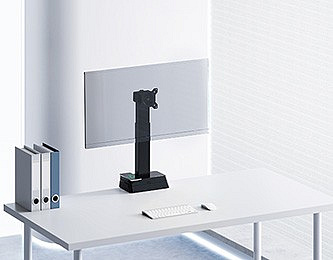 Uchwyt monitora z automatyczną regulacją wysokości Powerton ERGO LEVION oferuje najwyższej klasy rozwiązanie dla ergonomii w miejscu pracy – łączy zaawansowaną regulację elektryczną z eleganckim, nowoczesnym designem.