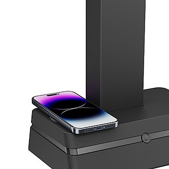 Umożliwia wygodne i szybkie ładowanie kompatybilnych urządzeń bezpośrednio na stojaku, dzięki czemu masz telefon zawsze pod ręką, a bez zbędnych kabli utrzymasz przestrzeń roboczą czystą i przejrzystą.