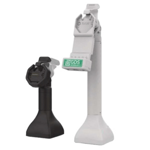 The RAM Mounts GDS Uni-Conn docking station (7“) with Key-Locking (Right) is a free-standing dock designed for devices enclosed in an IntelliSkin Thin-Case with Rear Pogo Pads. This solution can swivel 180 degrees and allows the device to tilt 180 degrees, making it ideal for customer-centric industries like retail, hospitality, food service, and more. It features an adapter plate for drill-down mounting, providing a stable base. Power is supplied through a Power over Ethernet (PoE) connection over a RJ45 port to the rear pogo pads integrated into the IntelliSkin Thin-Case. It also supports an easy docking and undocking process: The device in the IntelliSkin protective case is simply inserted into the base of the dock and pushed until it snaps into place. To remove it, a simple press of the lever releases the tablet. Product features RAM-GDS-DOCKLR-D11-7-U3E-GRY: Only compatible with IntelliSkin Thin-Case (Rear Pogo Pads) Snap-In function Key-Locking Easy insertion and removal Charging function Output Voltage: USB PD 3.0 - 5V @ 3A / 9V @ 2.2A / 12V @ 1.67A Power Output: 24W max Transfer Speed: 10/100Mbps Input Connector: JST Male Connector Input Cable Length: ca. 150 cm Includes RAM PoE to PD Charging Module Product Dimensions: Height from base to tilt bolt: 18.4 cm Base Width: 9.7 cm Base Depth: 9.7 cm Weight: approx. 1 kg Additional information: The Lever Stop included with this dock is required in order to function properly. Warranty on dock is void if dock is used without Lever Stop. Devices shown are not included in the delivery. Only the RAM-GDS-DOCKLR-D11-7-U3E-GRY is supplied.