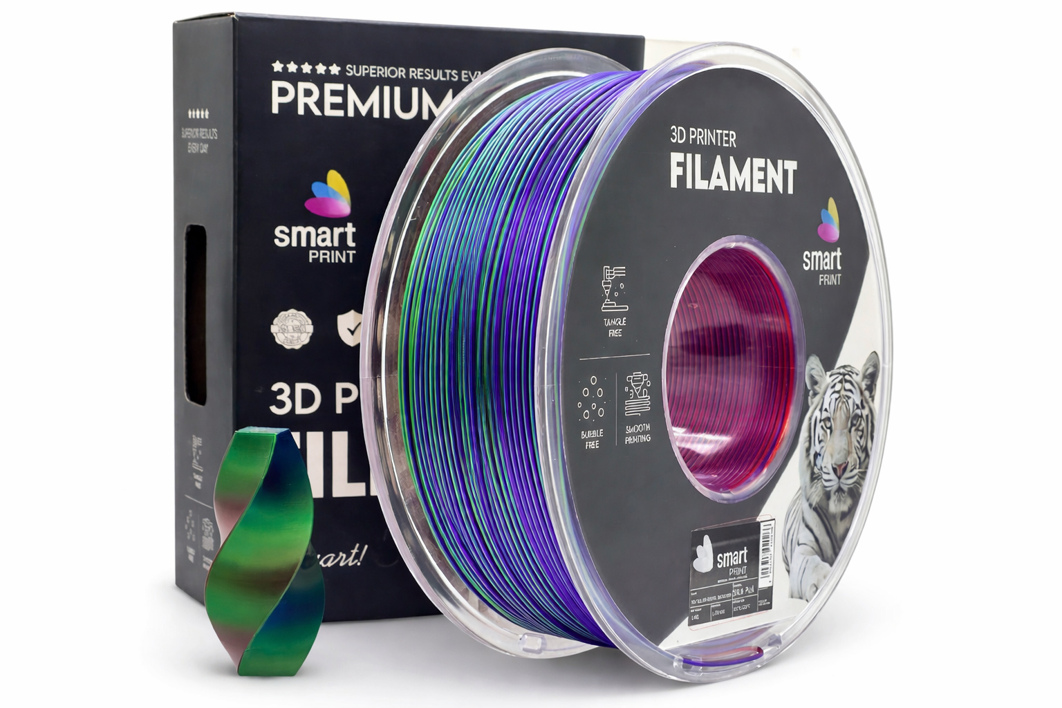 Filament Silk PLA Smart Print tworzy gładką, błyszczącą i jedwabistą powierzchnię, która nadaje wydrukom wyrazisty i atrakcyjny wygląd. Jest idealnym wyborem dla modeli dekoracyjnych, obiektów artystycznych i wydruków prezentacyjnych, gdzie kładzie się nacisk na efekt wizualny.