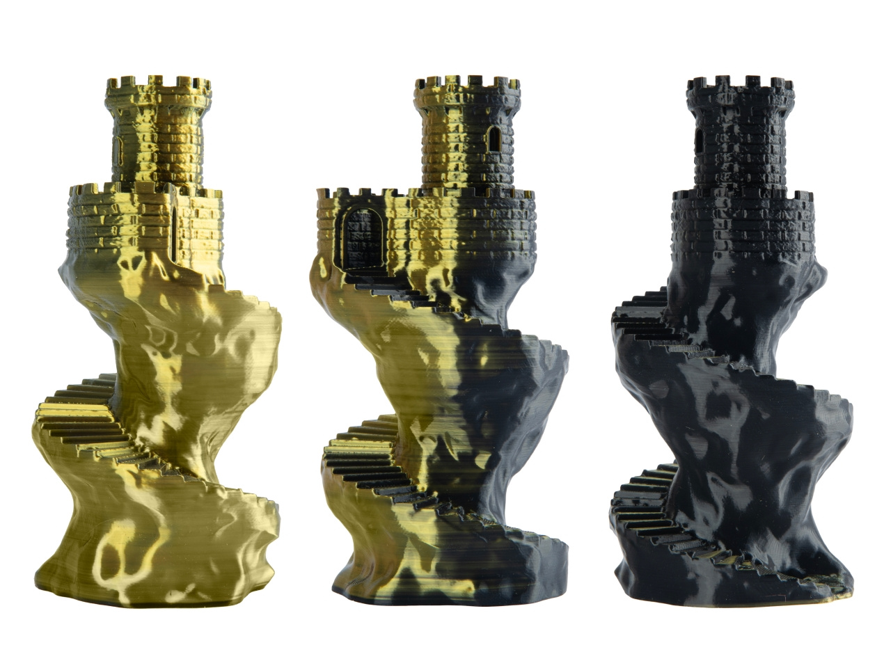 Wydruki z Magic SILK PLA wyglądają najlepiej w modelach ze skomplikowanymi detalami, gdzie efekt zmiany kolorów jest najbardziej imponujący.