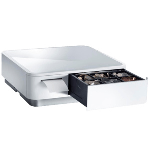 Cash drawer-receipt printer combination, front opening, dimensions (WxHxD): 308x100x300mm, insert: 4 bill, 6/8 coin, 1 check, printer: direct thermal, media width (max): 58mm, roll diameter (max): 50mm, printing speed (max): 100mm/sec, interfaces: 3x USB-A, 1x USB-C (for iOS), 1x USB-B, Bluetooth (5.0), includes: Power cable (EU, UK), USB cable (USB-A/USB-B, white), tablet holder (double-sided), receipt roll, color: blackLinki do pobrania
