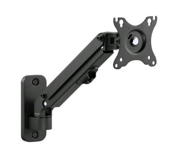 Materiał: aluminium, stal, plastik Wykończenie powierzchni: malowanie proszkowe Kolor: czarny z delikatną fakturą Rozmiar ekranu: 17" - 27" Nośność: 2 ~ 7 kg Kompatybilny z Vesa: 100x100, 75x75 mm Zakres nachylenia: +90° ~ -45° Zakres obrotu: +90° ~ -90° Obrót ekranu: +180° ~ -180° Instalacja: ścienna Prowadzenie kabli: tak Waga netto: 1,3 kg