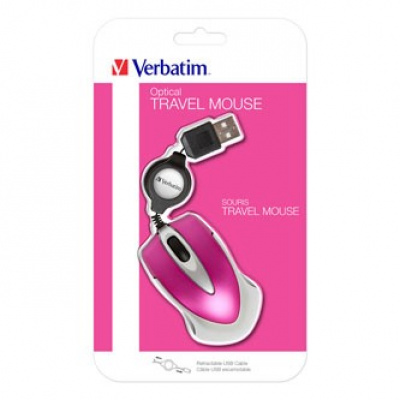 Opis produktu Verbatim Myš Go Mini 49021, 1000DPI, optická, 3tl., drátová USB, růžová, mini