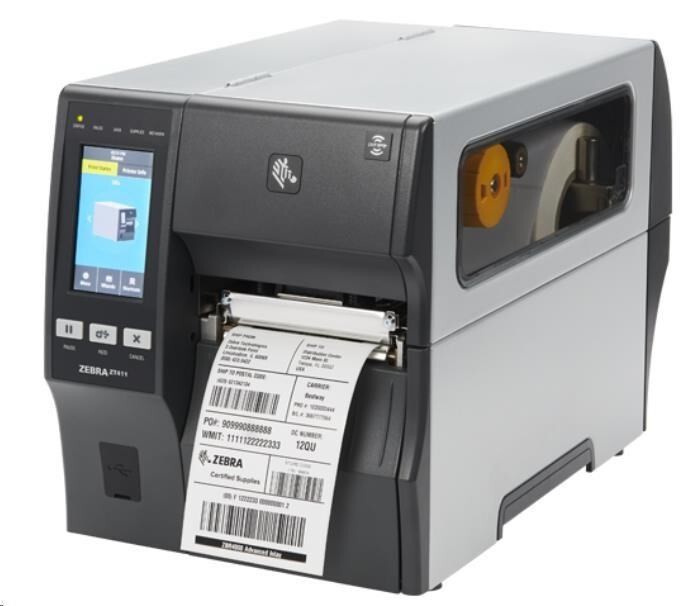 drukarka etykiet, drukarka średniego zasięgu, termotransfer, 8 punktów/mm (203 dpi), maksymalna szerokość nośnika.): 114 mm, szerokość druku (maks.): 104 mm, średnica rolki (maks.): 203 mm, prędkość (maks.): 356 mm/s, wyświetlacz (ekran dotykowy, kolorowy), zegar czasu rzeczywistego, USB (2x), RS232, Bluetooth (Klasa 5.3), Ethernet, Wi-Fi (802.11ax), RAM: 256 MB, Flash: 512 MB, emulacja: EPL, ZPL, ZPLII, w tym.: kabel zasilający (UE, UK), zamów osobno: kabel interfejsu